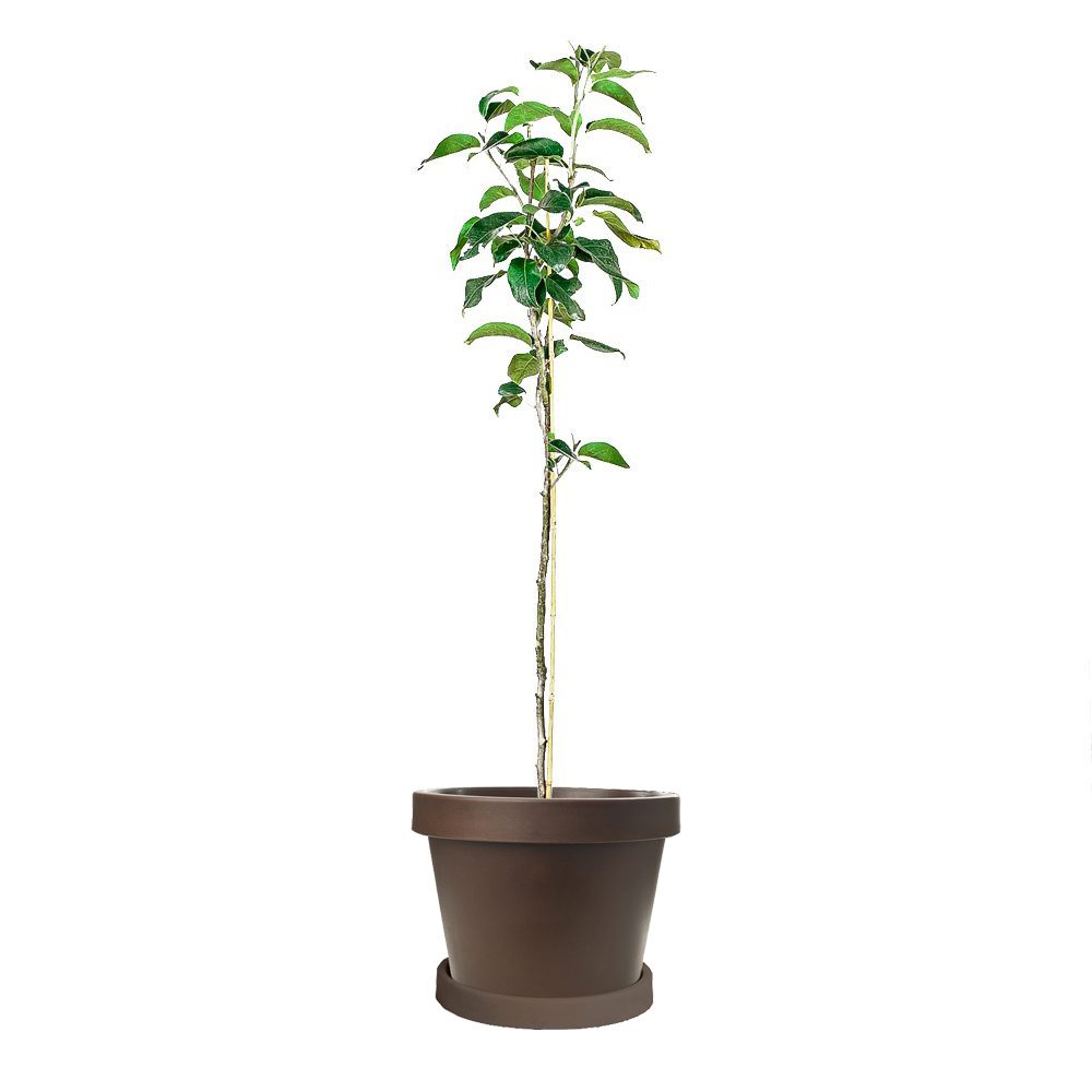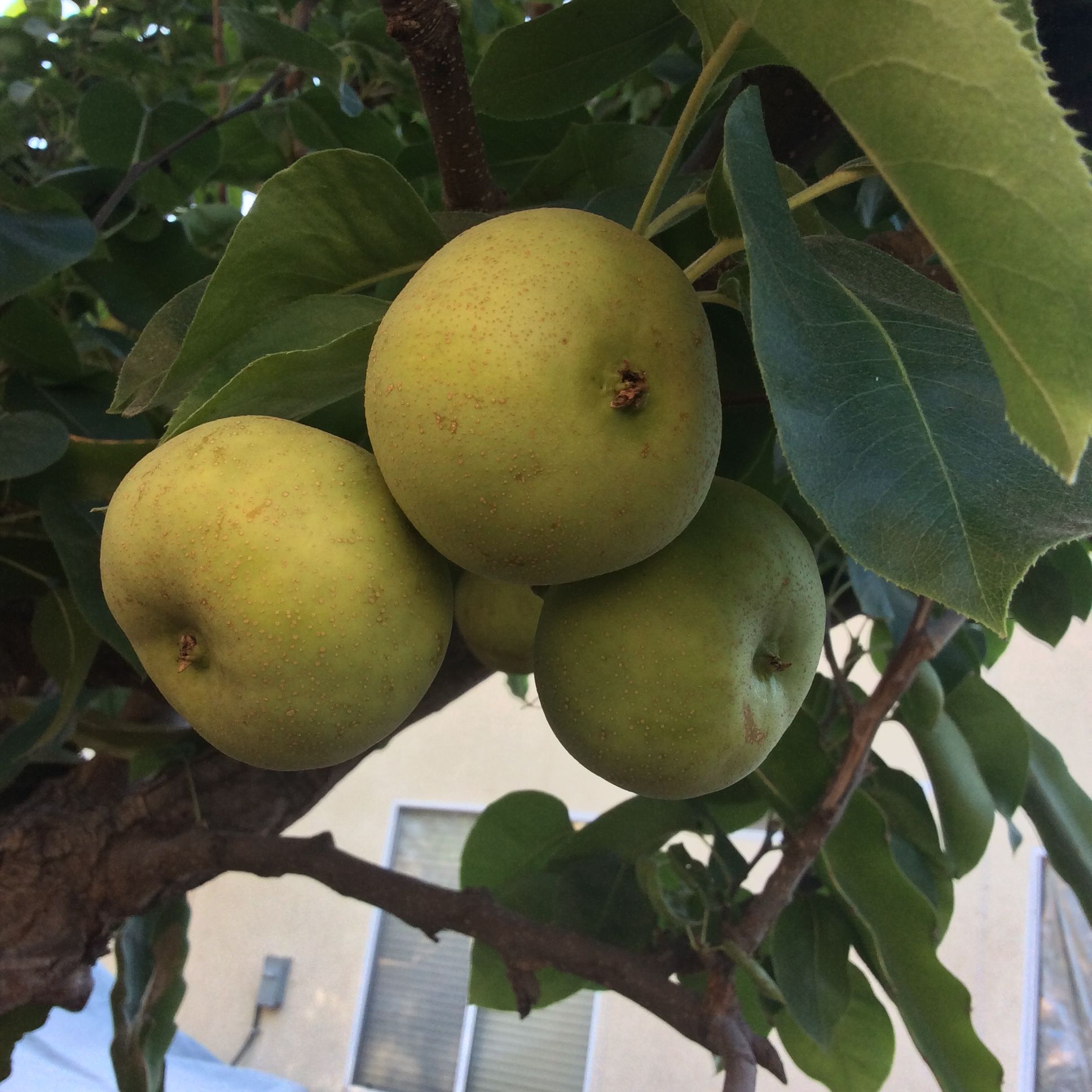 20th Century Asian Pear Trees are relatively small. Since they grow to a natural height of 10 feet, they make a perfect candidate for growing in a container. Growing this beautiful pear tree with its golden-yellow round fruit in a pot on your patio makes an elegant statement. Choose a pot that allows the current tree’s root ball to grow, and has holes for drainage.