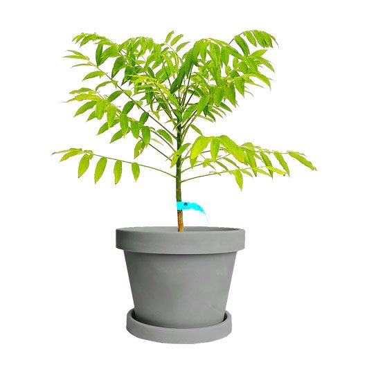 Alano Sapodilla Trees are somewhat self-fertile but they will grow more fruit with a second Alano Sapodilla Tree nearby. Since the trees are small they can also be grown in pots. Use large pots with holes for drainage and water when the soil surface in the pot becomes dry to 2 inches deep. Bring potted Alano Sapodilla Trees inside when frost is possible. When moving potted fruit trees in and out, some leaf drop is normal. Reduce fertilizer for potted Alano Sapodilla Trees to about half of the recommended amounts for in-ground trees.