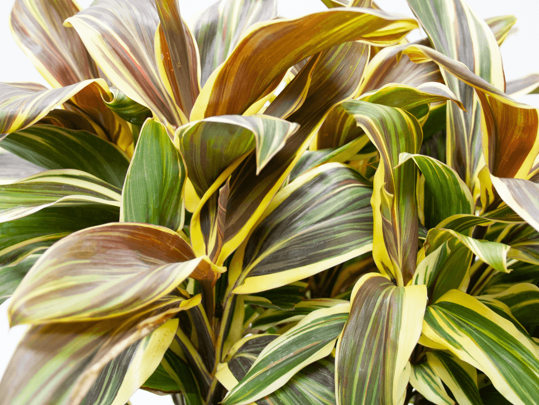 The Cordyline Chocolate Queen plant, or Cordyline fruticosa, is a colorful Ti plant with purple, brown, and green leaves with streaks of yellow. These multi-colored leaves are smooth, long, and broad, and they change colors as they age. As the leaves grow older and reach the bottom of the plant, they may turn to a deep green color.