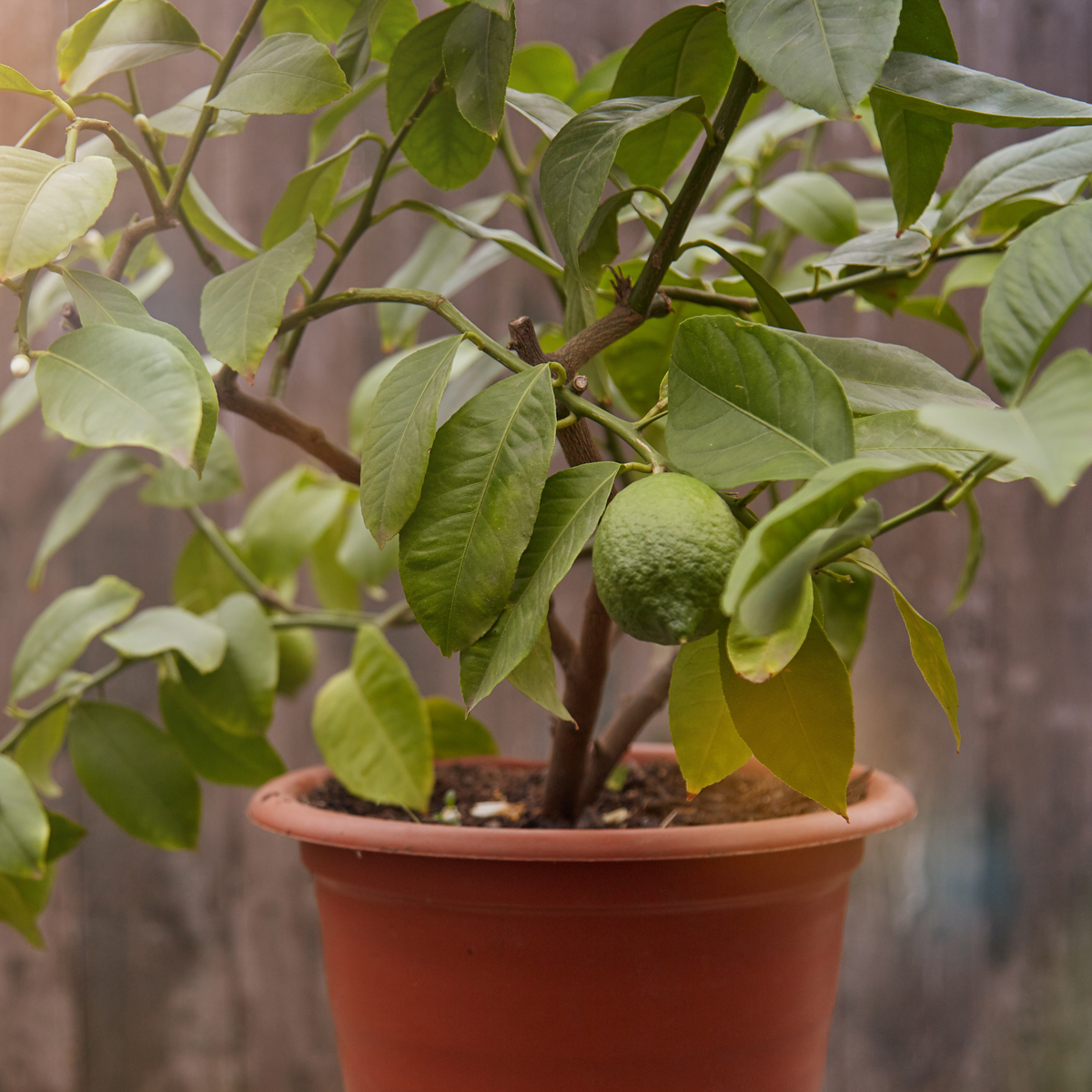 - Select a pot that is slightly bigger than the container your citrus tree arrived in and has lots of holes in the bottom. Fill the pot halfway with well-draining potting soil then gently place the Eureka lemon tree in the soil.