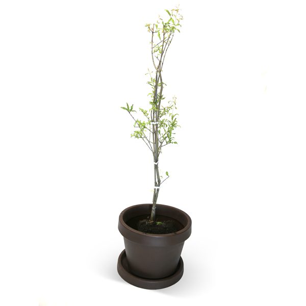 If you are growing your Kazake Pomegranate Tree in a container, be sure to choose a sturdy pot with adequate holes for drainage. Add enough soil to the pot to position the top of the tree root ball about 3 inches below the pot rim. Fill the sides with potting soil and bring the level up to the root ball surface. Water in well and allow the pot to fully drain.