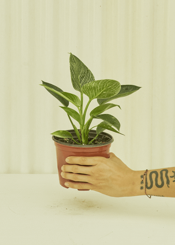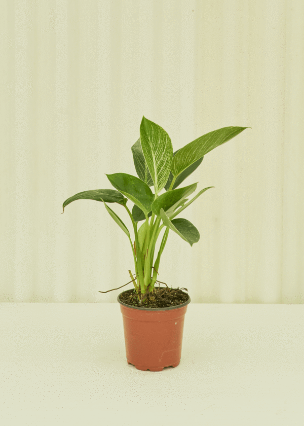 Philodendron Birkin has heart-shaped leaves with delicate yellowish-white to white pinstripes. The pointed oval leaves have a leathery feel and a glossy, dark green shine. You’ll notice that Birkin plant leaves are never the same. The rare variegation changes from leaf to leaf and can even change color.