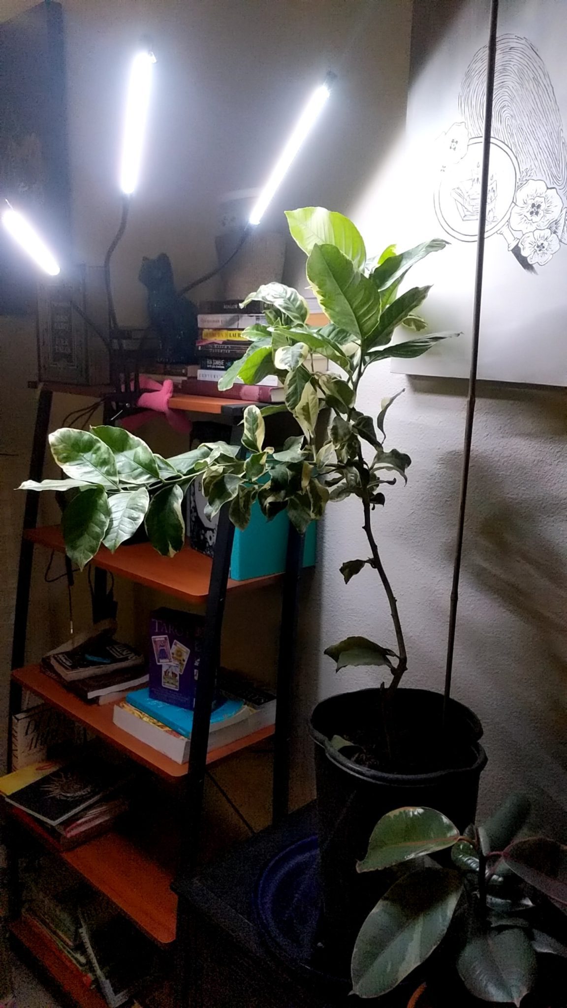 Update: Tree is kicking ass indoors on Coco-Tek coco coir, 1200W light at 4 ft, with some Hydroton clay pellets at bottom of 20 gallon container for drainage. Using General Hydroponics mostly. Key move was to give some potassium silicate to ease transition from outdoor to indoor. I’m also cheating a bit with humic acid, but growing citrus indoors is tough! It’s grown about 6″ in 6 weeks, watering sparingly and getting 16 hours a day of light. The top leaves are so beautiful, but I only have 8 ft to work with, so I may “top” the plant to encourage sideways growth. By far, the most hardy of my indoor citrus trees